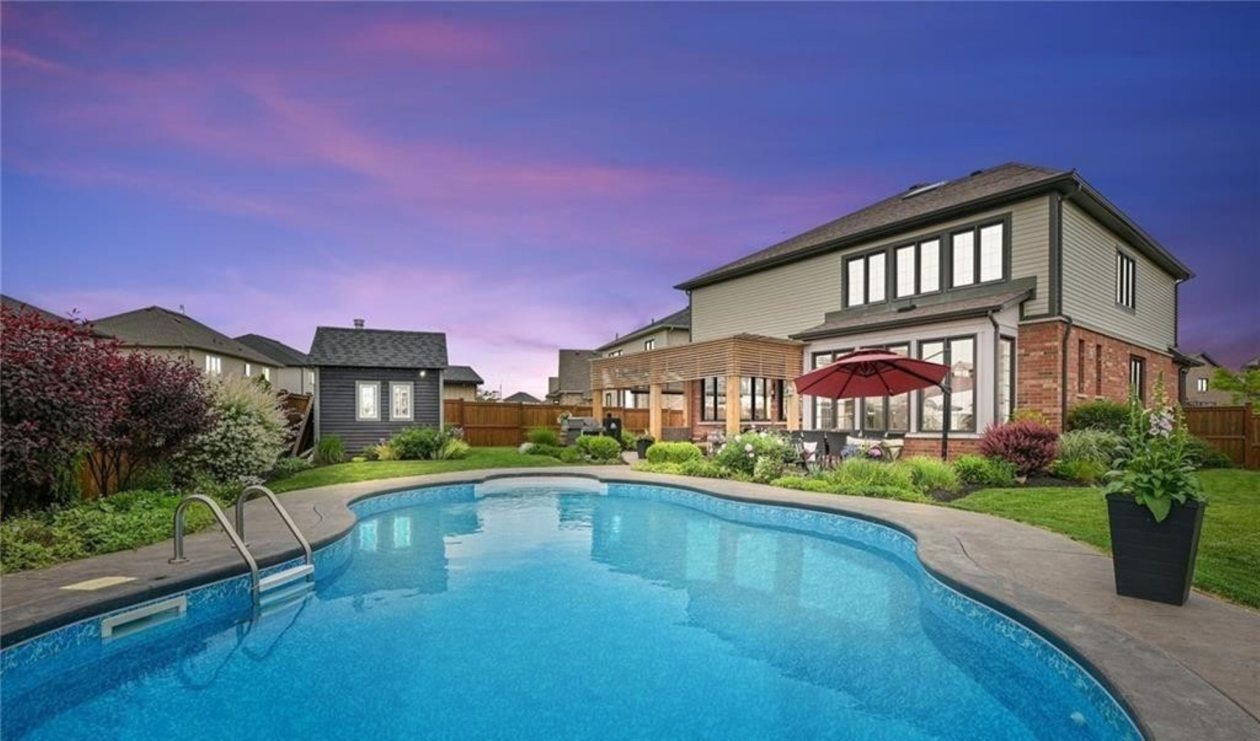 Welcome to 3 Success Way, an exceptional family home offering the perfect blend of luxury, comfort and resort-style living in the heart of Thorold. Set on a beautifully landscaped pie-shaped lot, this impressive home offers over 4,500sqft of finished living space. From the moment you arrive, the striking curb appeal, manicured gardens and inviting covered front porch create a warm first impression. Inside, the bright main floor features 9-foot ceilings, gleaming tile floors, rich hardwood accents and a thoughtfully designed layout that flows seamlessly throughout. At the heart of the home is a stunning chef-inspired kitchen with quartz countertops, stainless steel appliances, extensive cabinetry and a generous island perfect for gathering. The kitchen opens to the dining area and great room anchored by a cozy gas fireplace and large windows overlooking the stunning backyard. A formal living and dining space adds flexibility for entertaining, while a main floor bedroom or office offers the perfect work-from-home setup. Upstairs, a loft-style sitting area provides additional living space. The spacious primary suite features dual walk-in closets and a spa-inspired ensuite with freestanding soaker tub, glass shower and double vanity. Three additional bedrooms and multiple bathrooms offer plenty of space for family and guests. The fully finished lower level expands the home with a stylish entertainment area featuring a bar, rec room with gas fireplace, games space, fitness area and an additional bathroom. Step outside to the true highlight of this property, a private backyard oasis designed for unforgettable summers. The professionally landscaped yard features beautiful stonework and a stunning heated in-ground pool surrounded by lush gardens. A pergola-covered patio creates the perfect space for outdoor dining, entertaining or relaxing, delivering the ultimate staycation lifestyle. A home that truly delivers luxury, lifestyle and lasting impressions!