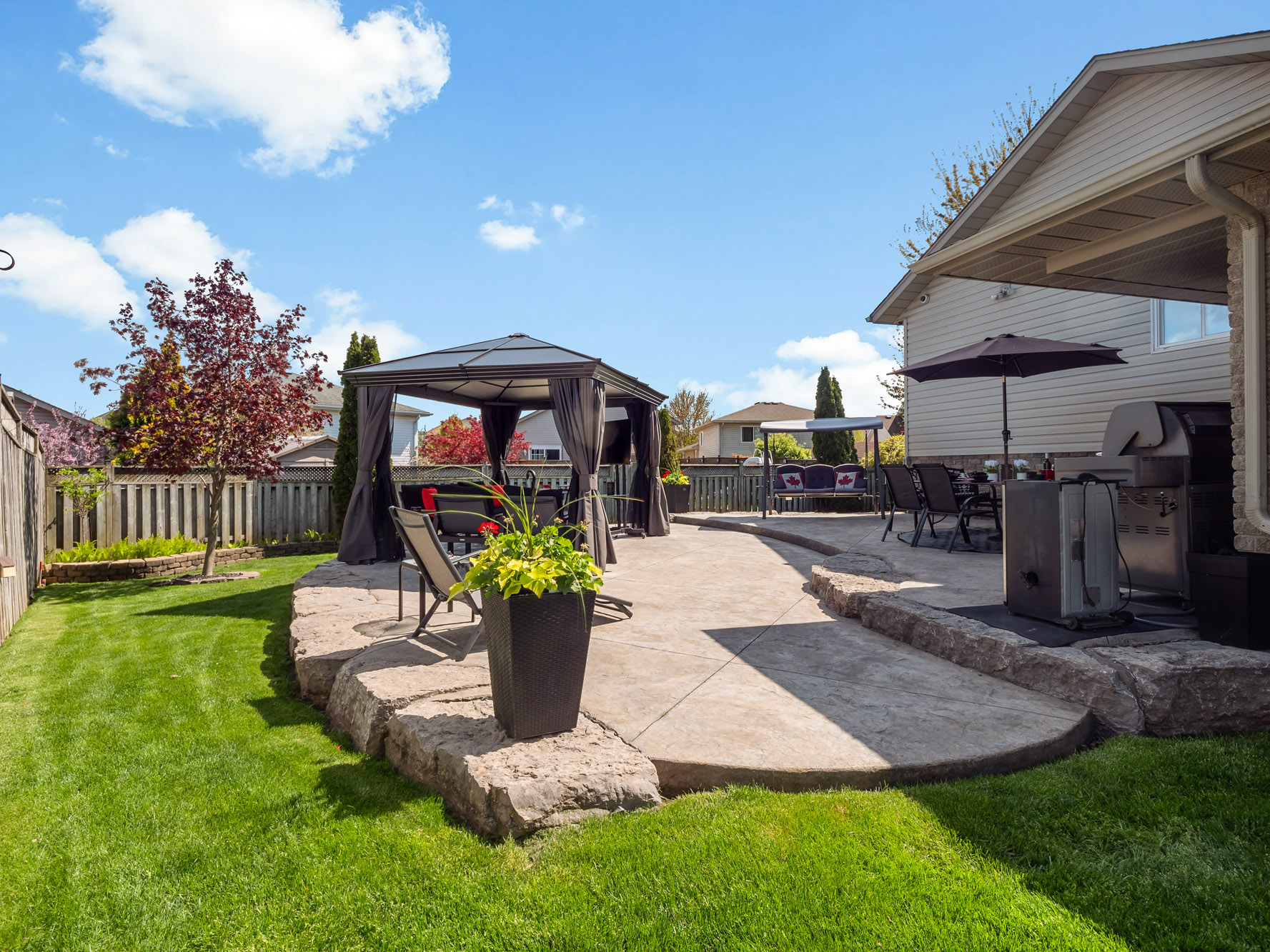 Welcome to 7090 Julie Drive, a beautifully curated home nestled in the highly sought-after Forestview neighbourhood of Niagara Falls. Set on a spacious pie-shaped lot and surrounded by mature landscaping, this exceptional 4-level backsplit offers a seamless blend of comfort, style and refined living. From the moment you step inside, you're welcomed by a bright, open-concept main level where natural light pours through and effortlessly connects the living, dining and kitchen spaces. At the heart of the home, the stunning kitchen is designed for both everyday living and entertaining, featuring stone countertops, an expansive 10+ foot island and generous storage, the perfect place to gather with family and friends. Upstairs, the private bedroom level offers a peaceful retreat with a beautifully updated bathroom showcasing porcelain tile, a stone shower floor and premium Riobel fixtures, creating a spa-like experience at home. The lower level provides the space to unwind in a warm and inviting family room, complete with a gas fireplace and custom-built bar, an ideal setting for cozy evenings or hosting guests. An additional bedroom and full bathroom provide flexibility for growing families or visiting guests. The basement offers added versatility with a separate entrance from the garage, a cold cellar and a rough-in for a future bathroom, presenting excellent potential for expanded living space. Step outside to your own private backyard oasis, thoughtfully designed with a two-tier concrete patio, natural gas hookup and a spacious 12x12 shed. Whether you're entertaining under the stars or enjoying a quiet morning coffee, this beautifully landscaped space offers a true sense of retreat. Perfectly located just minutes from highway access, top-rated schools, community centre, Costco and everyday amenities, this home combines location, lifestyle and thoughtful design in one of Niagara's most desirable neighbourhoods. Book your showing today!